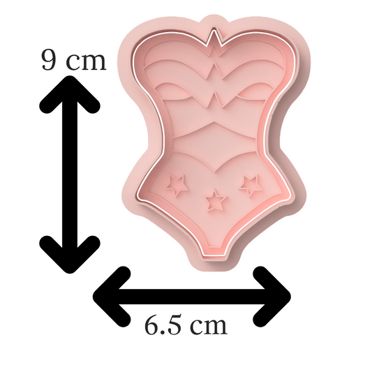 Wonder Woman Corset Cookie Cutter & Embosser Superhero Party Biscuit Stamp