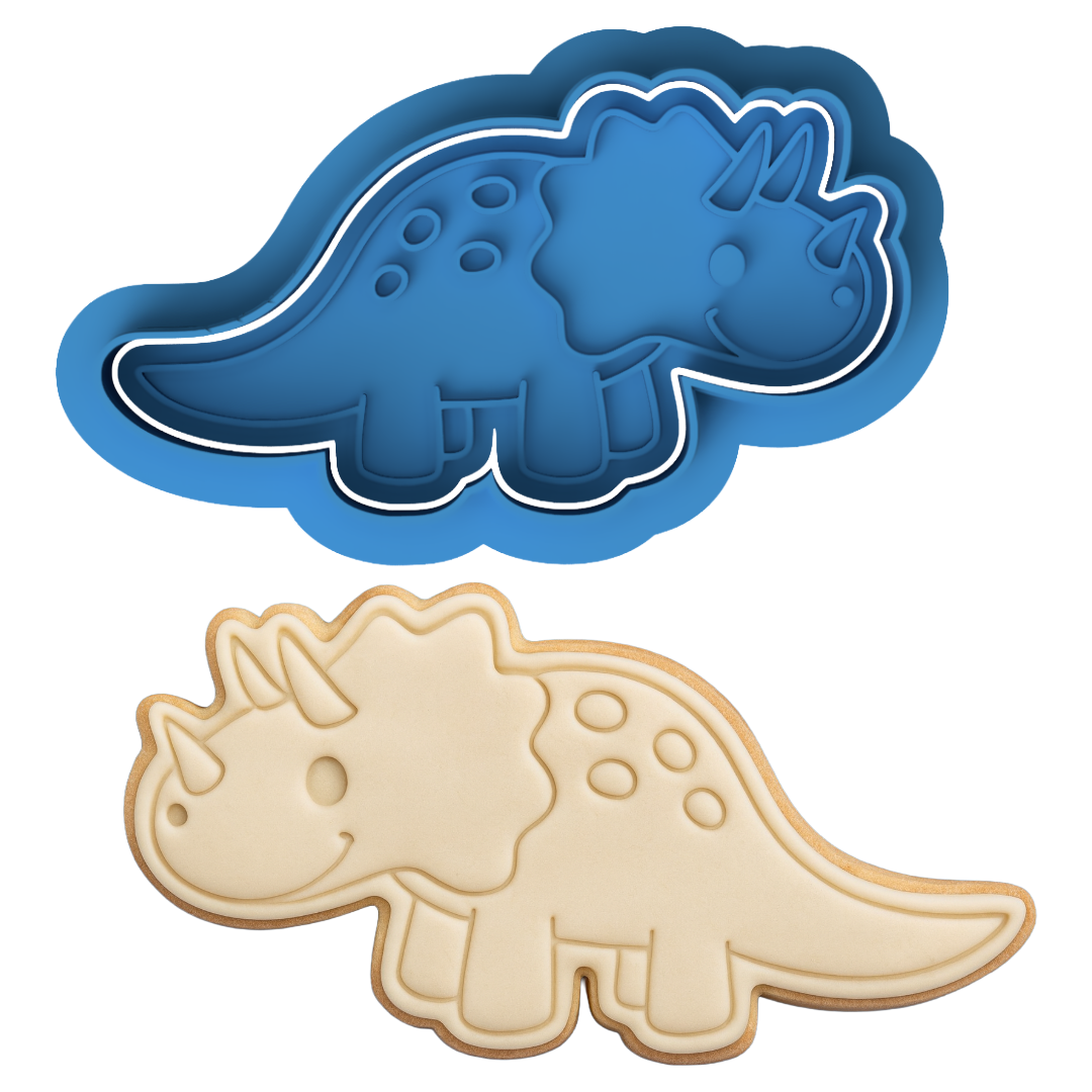 Cute Triceratops Dinosaur Cookie Cutter & Embosser – Jurassic Party Biscuit Stamp