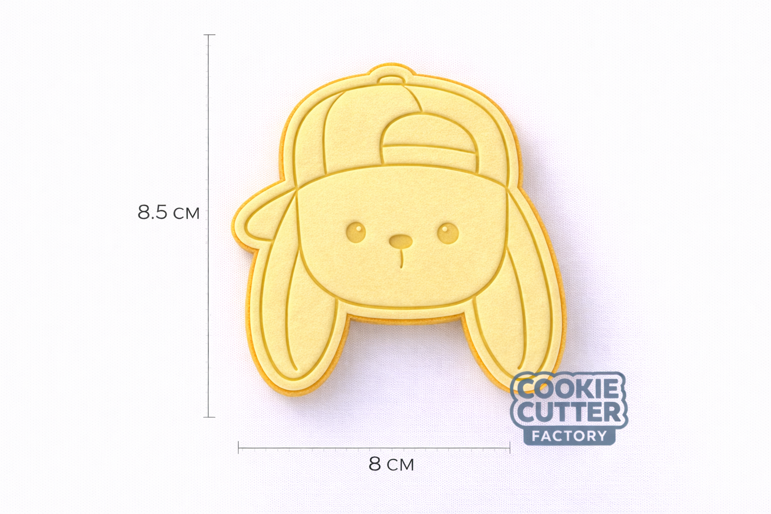 Bring some "cool" to your holiday baking with our Bunny in Baseball Cap set. This trendy design features a sweet rabbit rocking a backwards baseball cap, making it a hit for kids' parties, sporty celebrations, or unique holiday gift sets. The high-quality embosser ensures all the details—from the cap's panels and brim to the bunny's adorable face—are crisply imprinted for a professional, stylish finish.