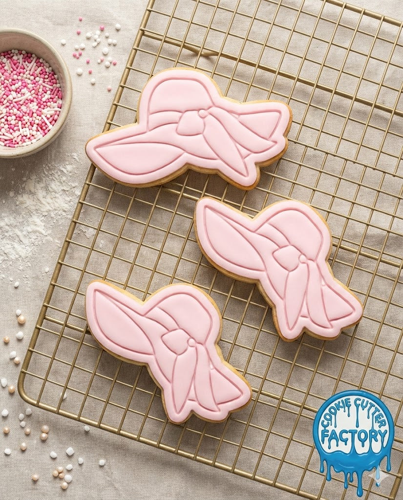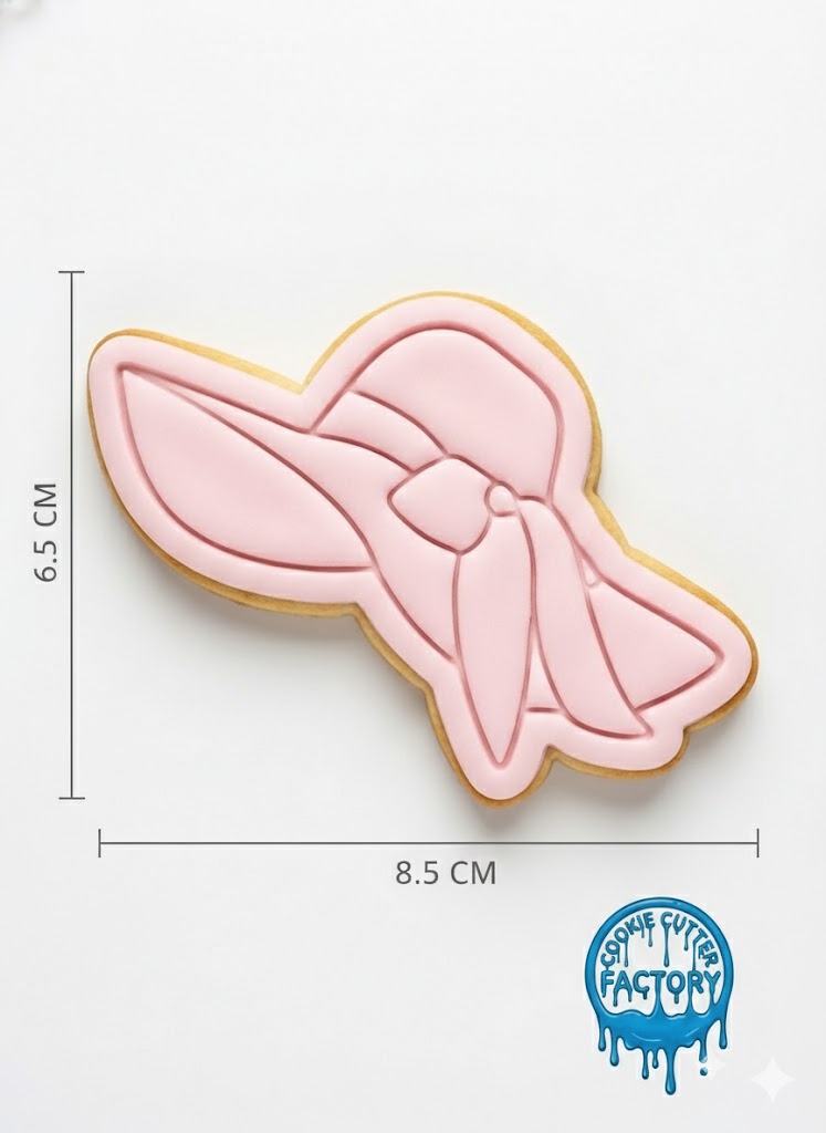 Add a touch of summer style to your baking with this Floppy Sun Hat cookie cutter set. The design features a classic wide-brimmed hat accented with a decorative ribbon bow. It is perfect for creating themed treats for garden parties, tea parties, or beach-side celebrations.