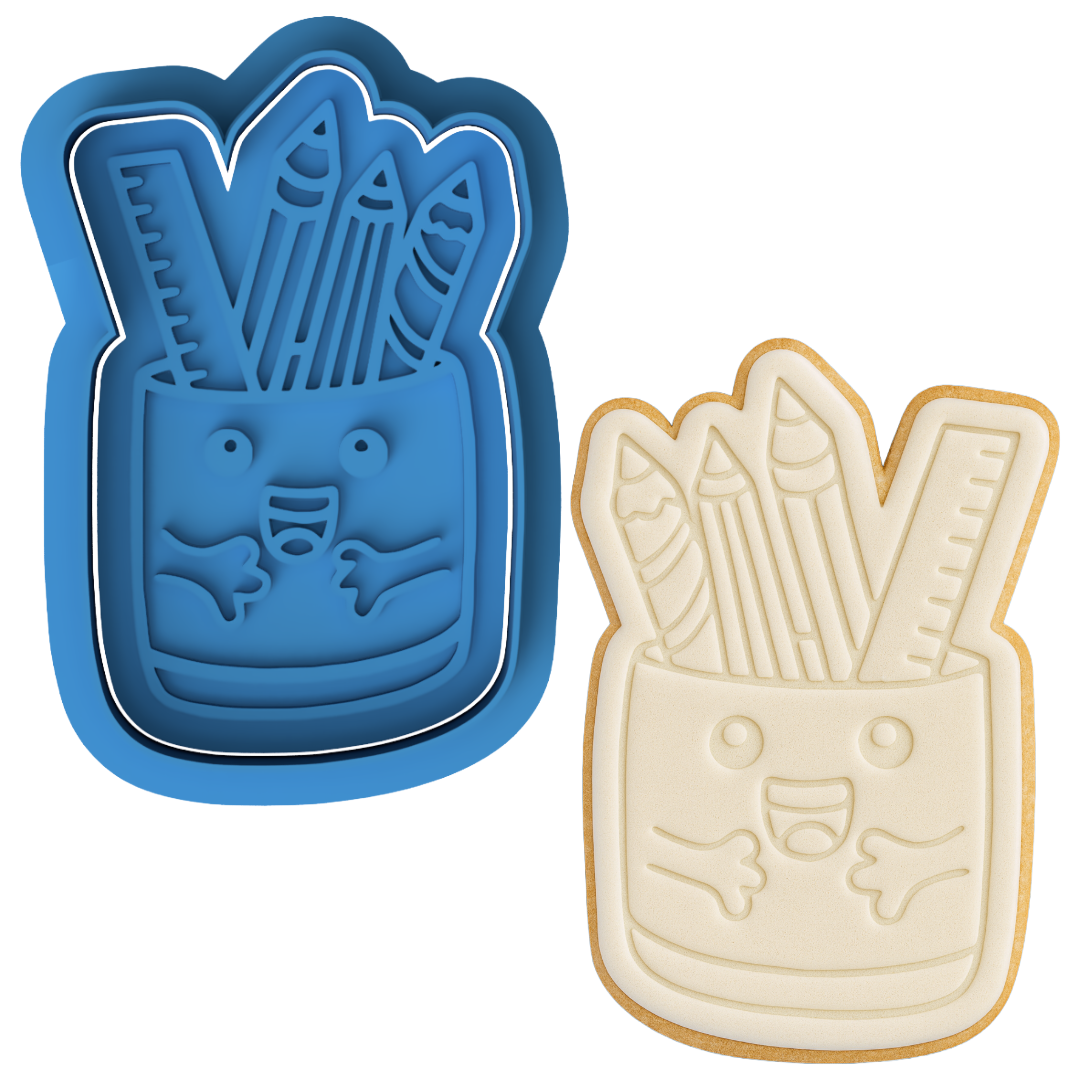 Happy Pencil Pot Cookie Cutter & Embosser Stamp