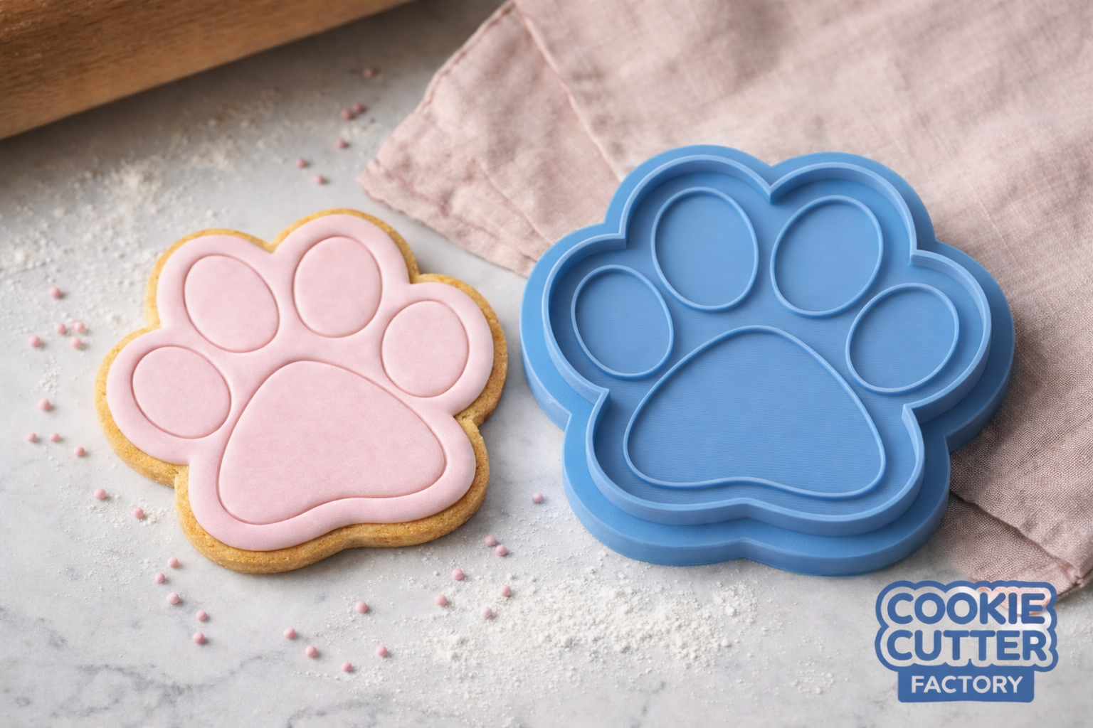 Add a playful touch to your baking with our Paw Print cookie cutter and embosser. This versatile design is perfect for animal lovers, featuring a classic four-toed paw shape that works beautifully for puppy, dog, cat, or kitten-themed events. It is a popular choice for Bluey or Paw Patrol inspired birthdays, pet adoption celebrations, or simply making fun treats for the family. The embosser provides a defined pad and toe detail for a professional finish on every biscuit.