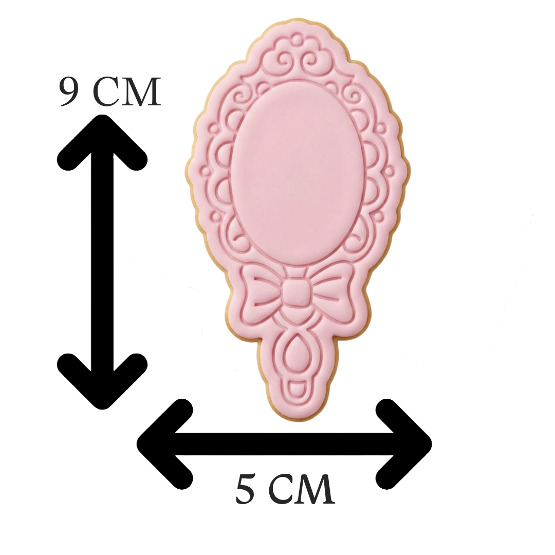 Mirror, mirror on the wall! ๐ Add a touch of royal elegance to your treats with this **Princess Hand Mirror Set**. Featuring an ornate frame, a cute bow on the handle, and beautiful scrollwork details, this cutter is perfect for Snow White parties, spa-themed birthdays, or any little princess who loves to play dress-up.