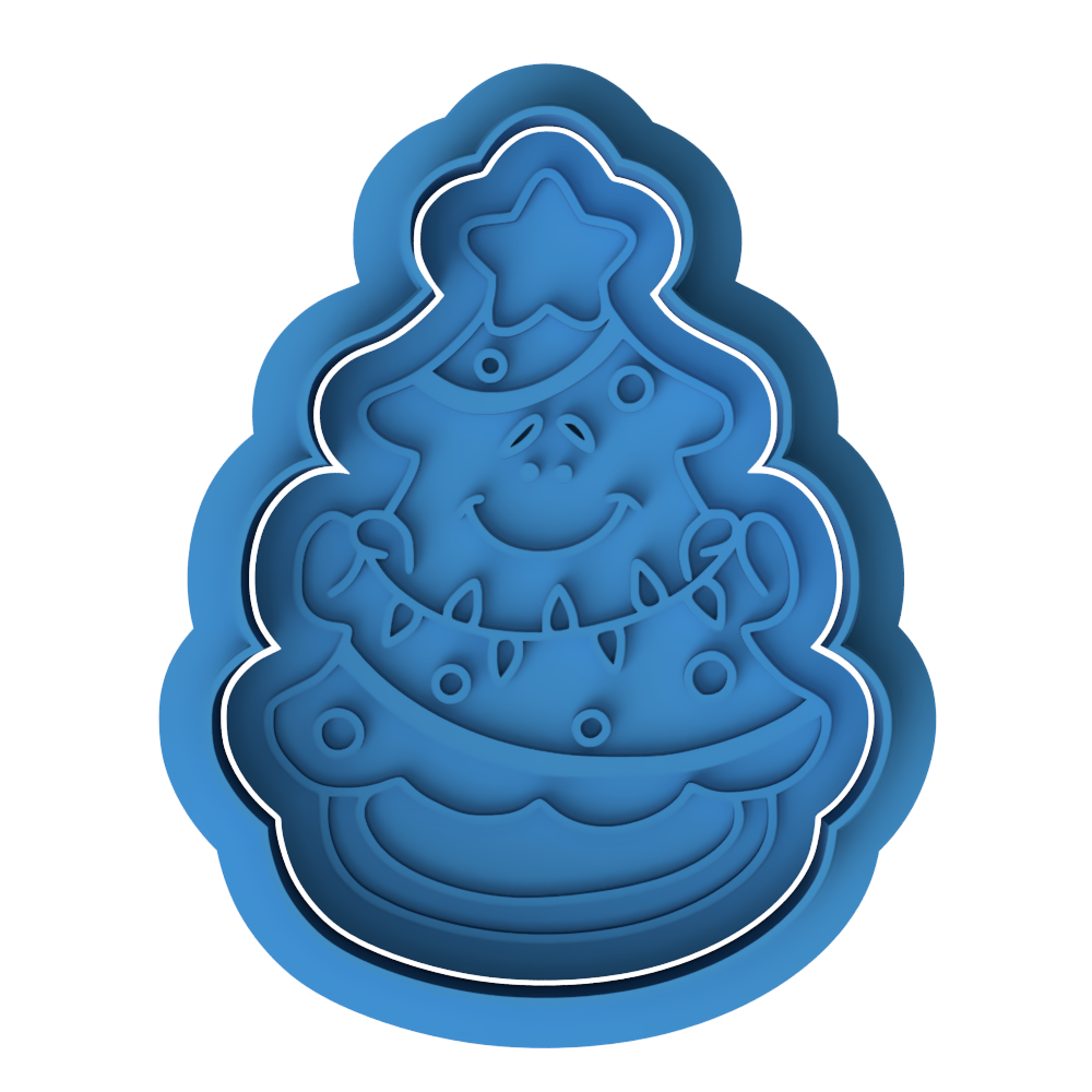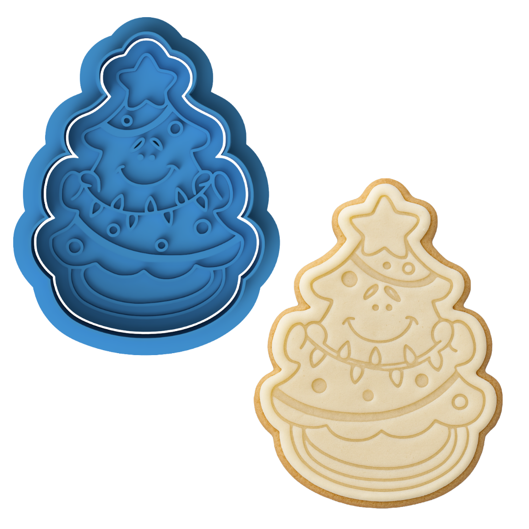 Smiley Christmas Tree Cookie Cutter & Embosser – Festive Holiday Design