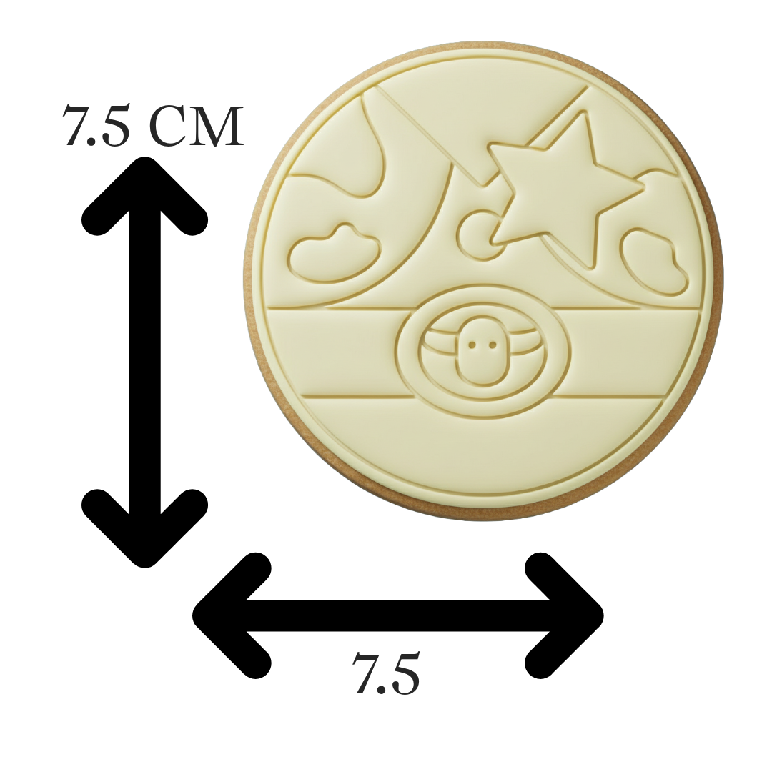 This cookie cutter and embosser set is a must-have for any Toy Story fan! It beautifully combines all the most iconic parts of Woody's world into one perfect circle: Andy's famous wallpaper clouds, a sheriff's star, and Woody's belt and buckle.