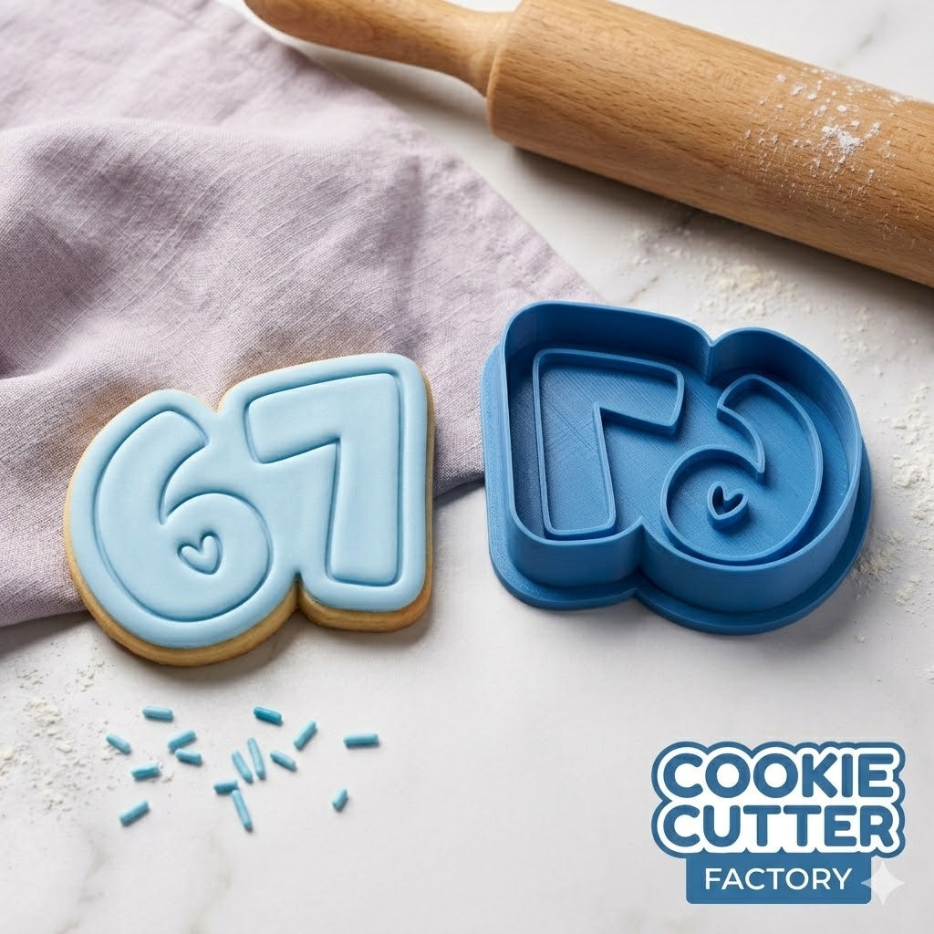 Can I get a 6 7? 🤪📉 Embrace the chaos with this **Viral 6 7 Meme Set**! Whether you're a fan of the "67 Kid," the song, or just love confusing older generations with brainrot content, this cutter is the ultimate flex. Featuring the iconic numbers in a bubble font with a cute heart detail, it’s perfect for viral video treats or just for the lolz.